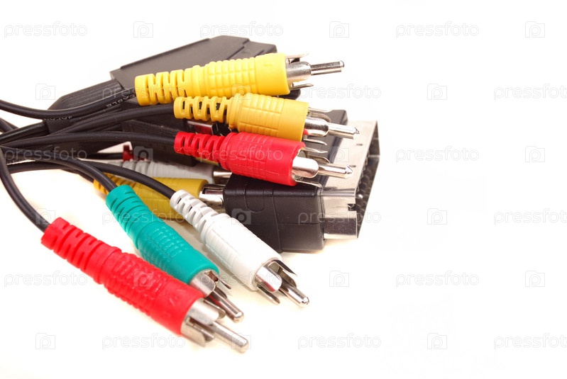 Аудио-видео кабель на белом фоне
