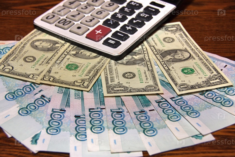 Много денежных купюр на столе бухгалтера
