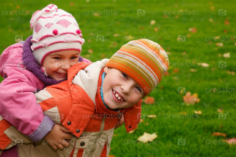 Сестра с братом играют в осеннем парке