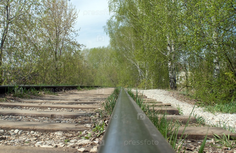 Рельсы железной дороги вдоль леса