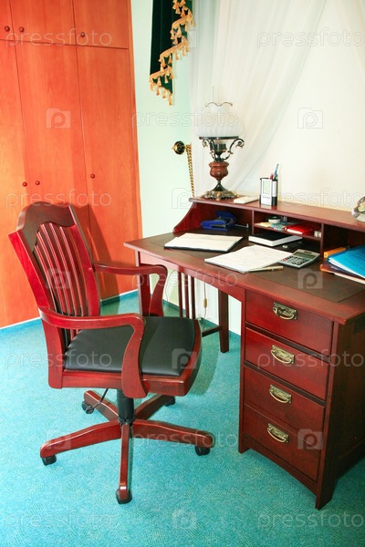 Деревянный письменный стол и кресло