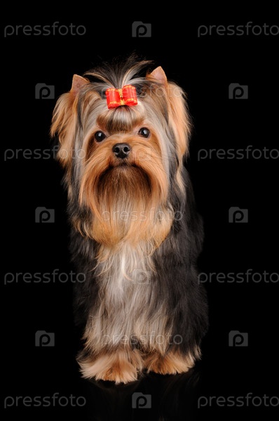 Йоркширский терьер на черном фоне