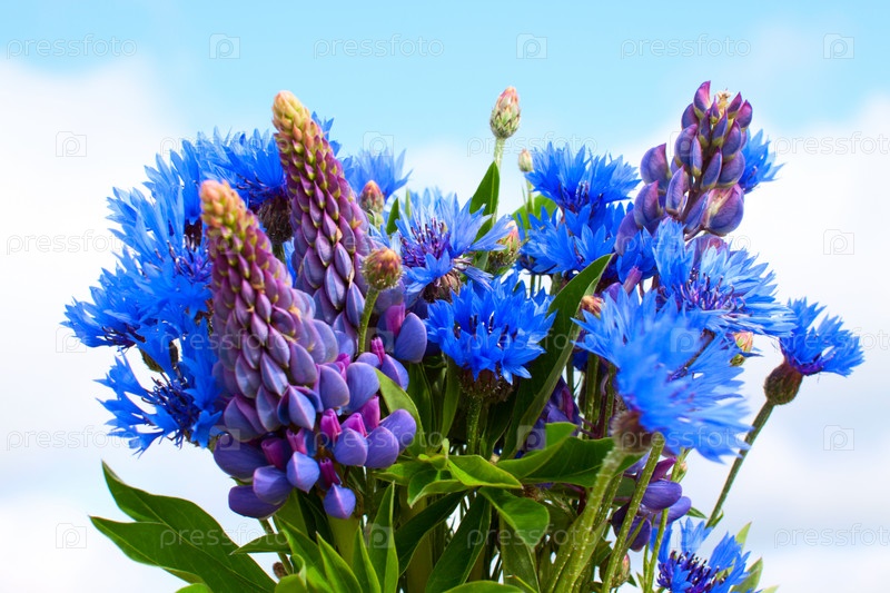 Букет зи васильков и люпинов