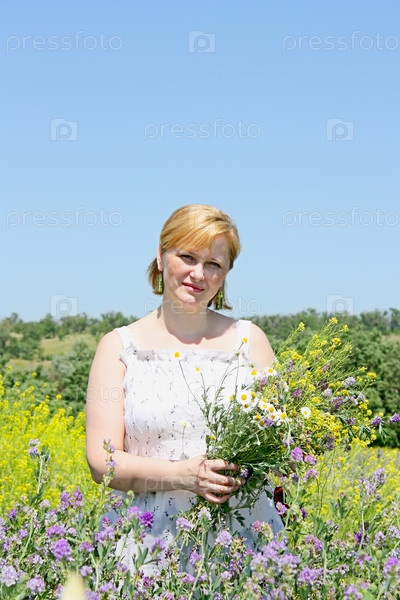 Взрослая красивая женщина с букетом цветов