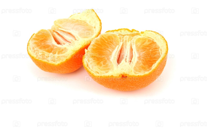 Половинки мандарина на белом фоне