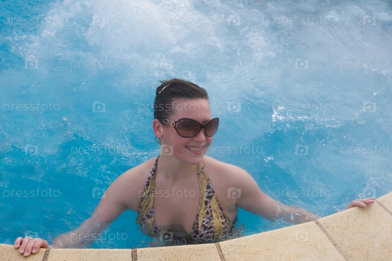 Девушка в бассейне с горячей минеральной лечебной водой
