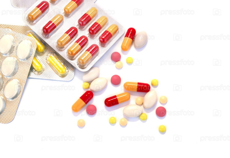 Таблетки и капсулы на белом фоне