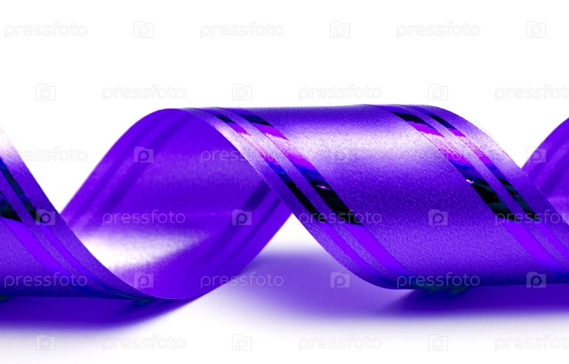 Ленточка фиолетового цвета на белом фоне крупным планом