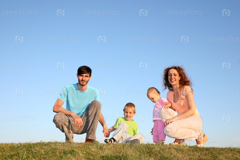 Семья из четырех человек на лугу