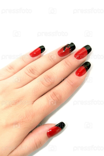 Рука с маникюром на белом фоне