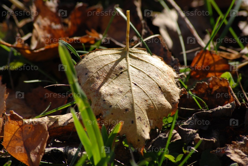 Желтый осенний лист на земле