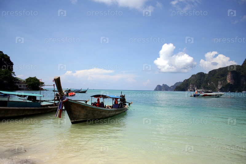 Лодки на берегу океана в Тайланде