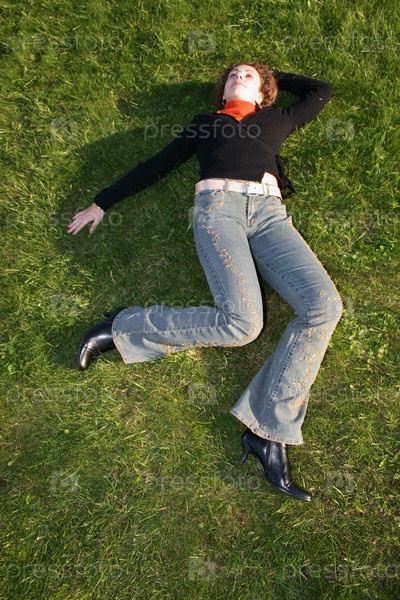 Женщина лежит на траве