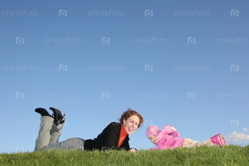 Мать с ребенком лежит на траве
