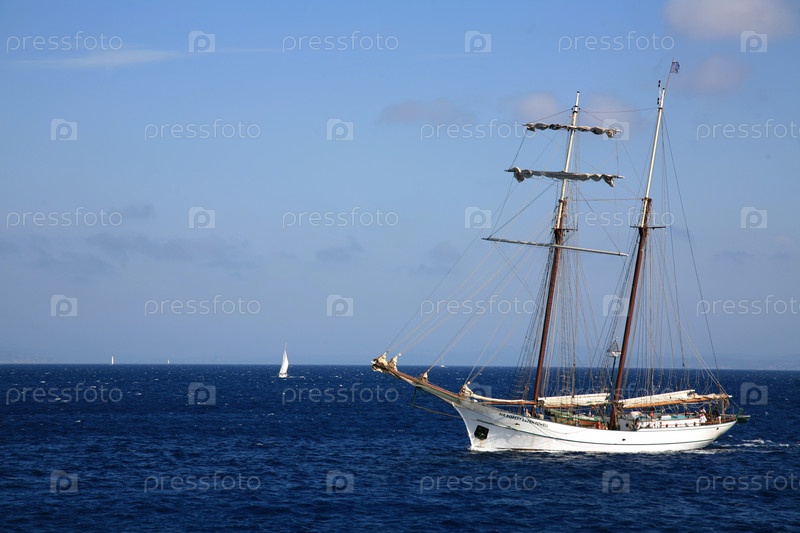 Парусник в море у берегов Франции