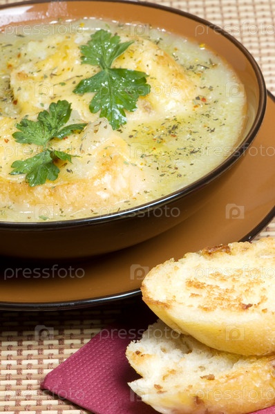 Французский суп с луком-пореем и гренки с сыром