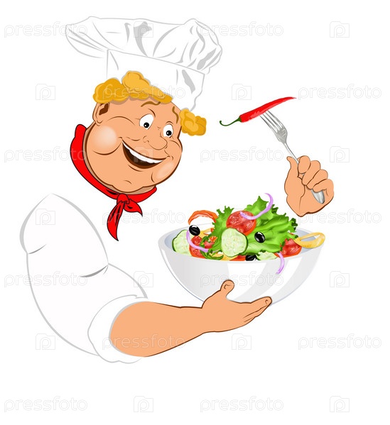 Шеф-повар и вегетарианский салат из свежих овощей на белом фоне