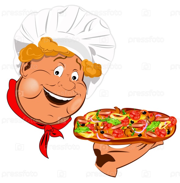 Шеф-повар и традиционная итальянская пицца на белом фоне