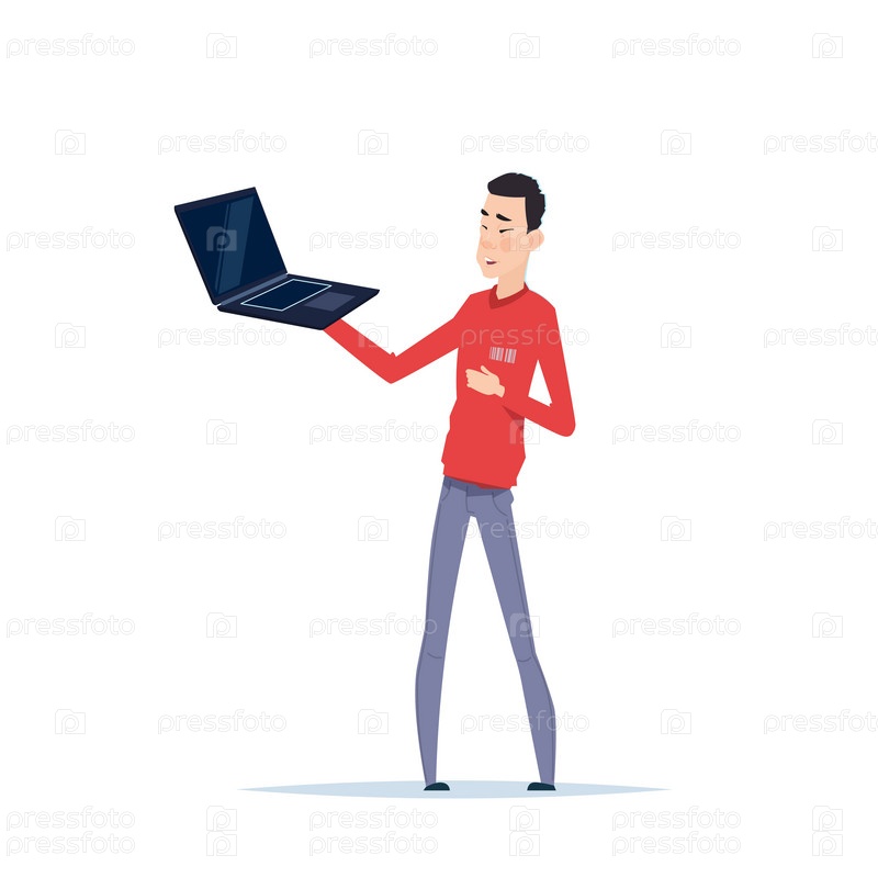 Азиат с ноутбуком
