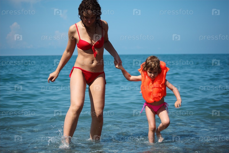 Мама с дочерью в воде