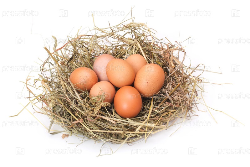 Коричневые яйца в гнезде