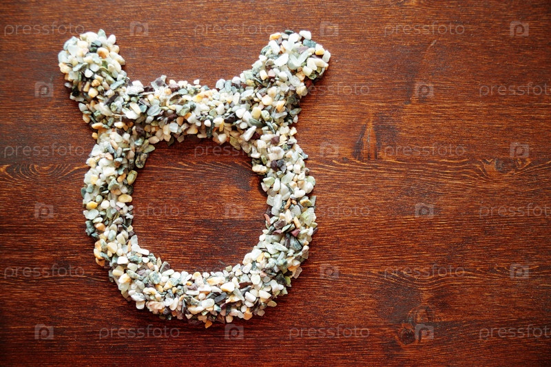 Знак зодиака Телец из камней на деревянной поверхности