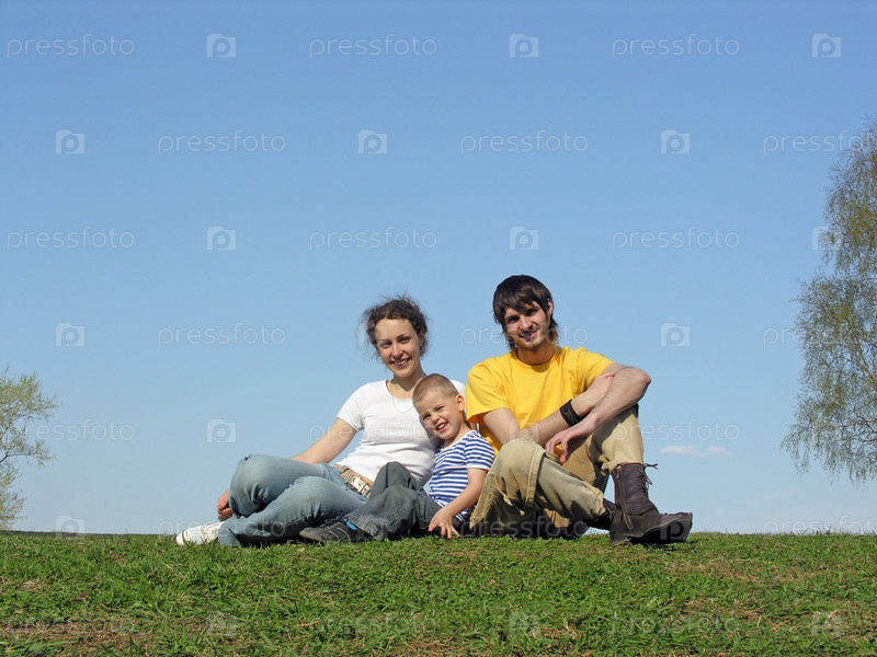 Счастливая семья отдыхает на природе