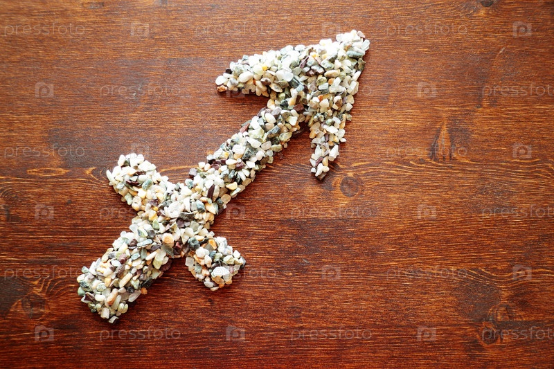 Знак зодиака Стрелец из камней на деревянной поверхности