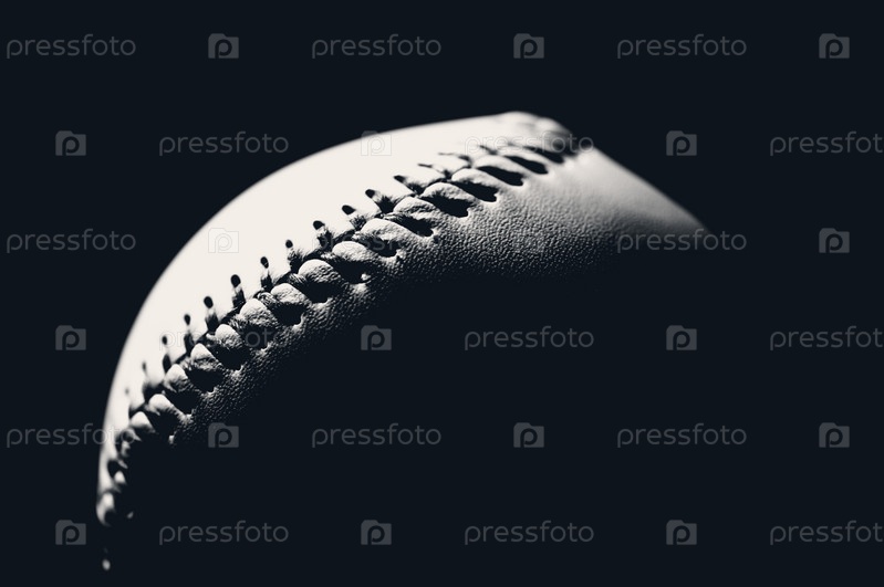 Черно-белое изображение бейсбольного мяча, крупный план