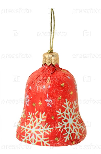 Конфета в форме колокольчика на белом фоне