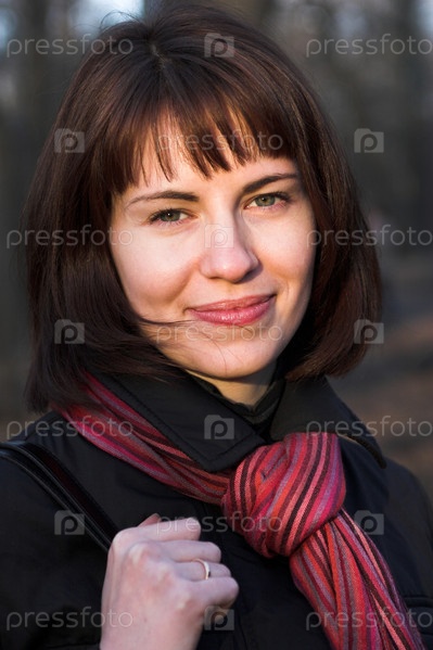 Привлекательная улыбающаяся женщина в парке