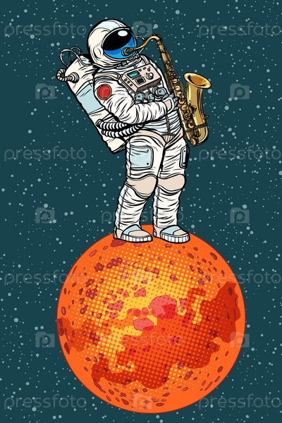 Астронавт играет на саксофоне на Марсе