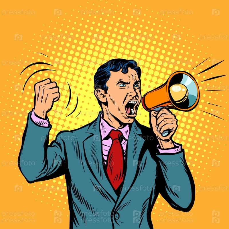 Бизнесмен с мегафоном стиле поп-арт