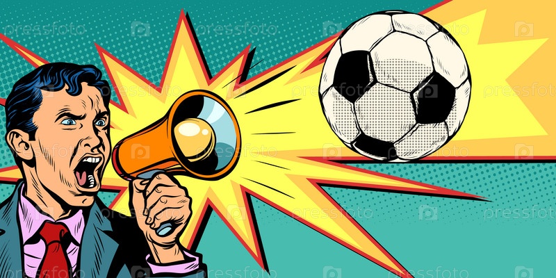 Бизнесмен с мегафоном - фанат футбола