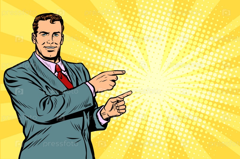 Бизнесмен, указывая пальцем
