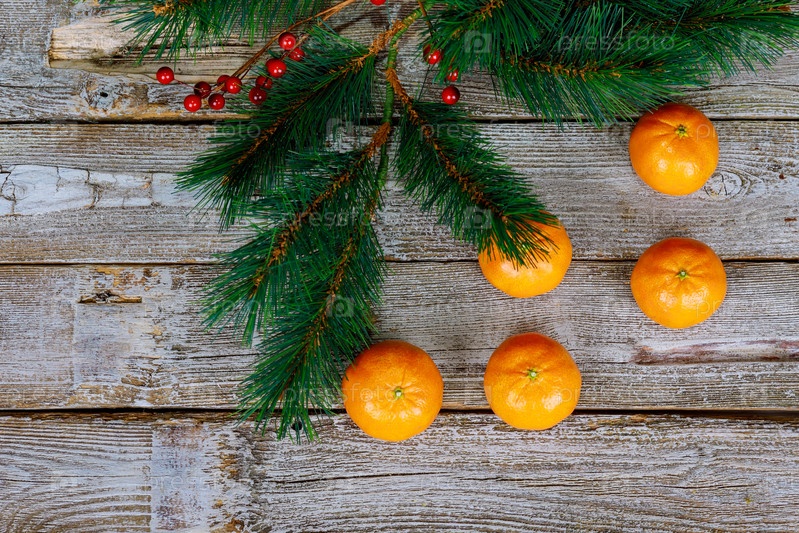Еловые ветки с мандаринами