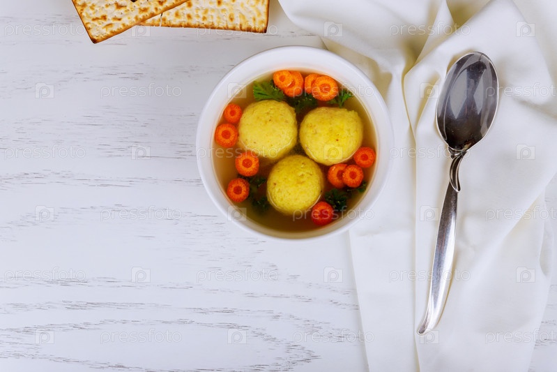 Традиционный еврейский Ашкенази суп с мацой