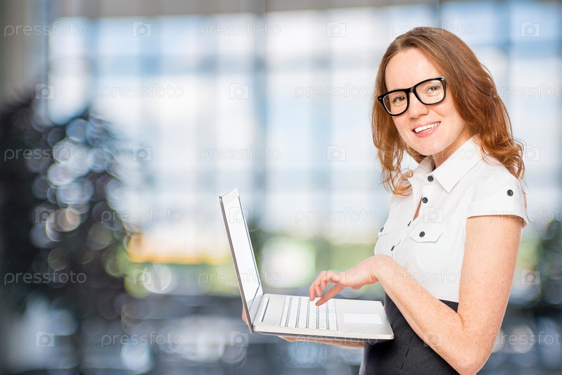 Секретарь с ноутбуком в офисе