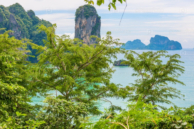 Вид на Андаманское море в Таиланде через листву деревьев