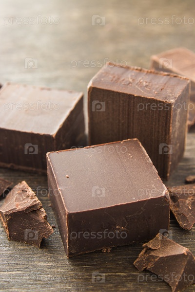 Темный шоколад на деревянном фоне