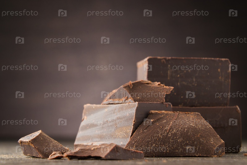 Темный шоколад на деревянном фоне