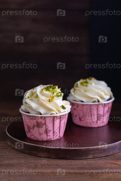Самодельные кексы на деревянном фоне