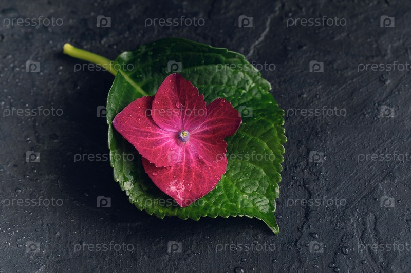 Фиолетовый цветок гортензии с листом