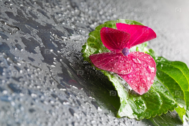 Фиолетовый цветок гортензии с листом