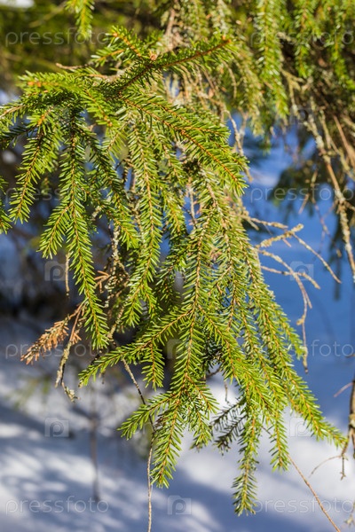 Еловая ветка на весеннем солнце