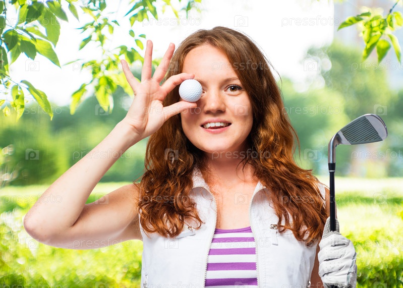 Красивая девушка на фоне поля для гольфа