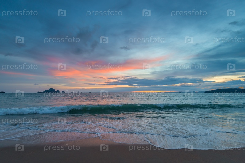 Красивые морские волны и горы на горизонте