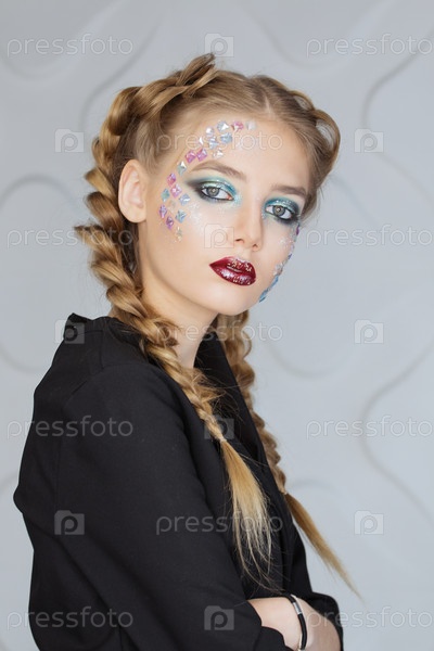 Женщина с красочными макияжем