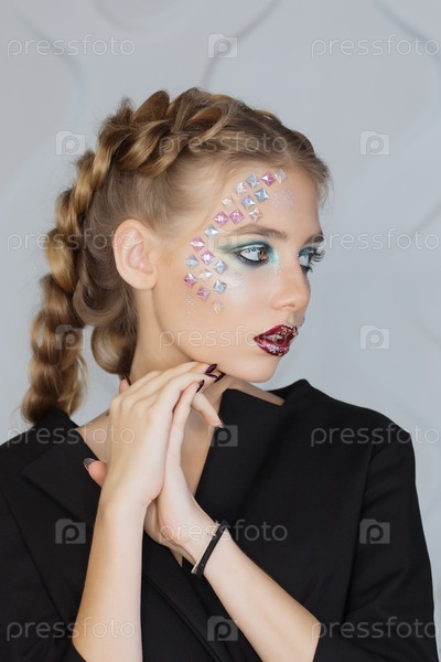Женщина с красочными макияжем