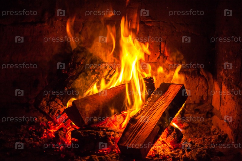 Огонь горит в камине